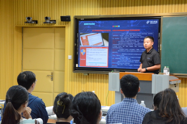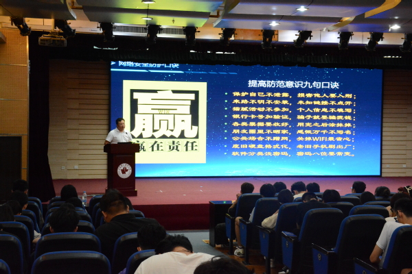 在新生军训现场,潍坊市委网信办网络安全宣传服务队与口腔医学院新生开展网络安全“面对面”交流活动,同学们着装整齐,肃立聆听专家讲解,现场知识答题环节气氛热烈。在图书馆演播厅,网络安全专家黄鑫老师结合当前网络安全形势,通过生动的案例分析,深入浅出地讲解了网络安全的重要性以及应对网络安全防范技巧,为来自各学院的200余名同学上了一堂别开生面的网络安全体验课。在网络信息中心录播教室,赛尔网络有限公司的专家们为各部门、各学院网络信息员及系统管理员就网络与数据安全、正版化软件使用等方面开展培训。培训过程中,专家耐心解答了老师们在日常网络使用中遇到的问题和困惑,并为老师们提供了切实可行的建议和解决方案。